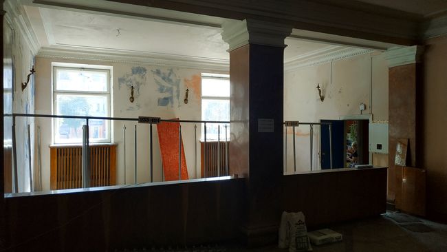 - По сути мы начали потихоньку делать ремонт около 3-х лет назад. Здание театра довольно большое и старое. На 3-м этаже много закулисных комнат, гримерных, костюмерных, разных кабинетов для персонала.