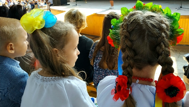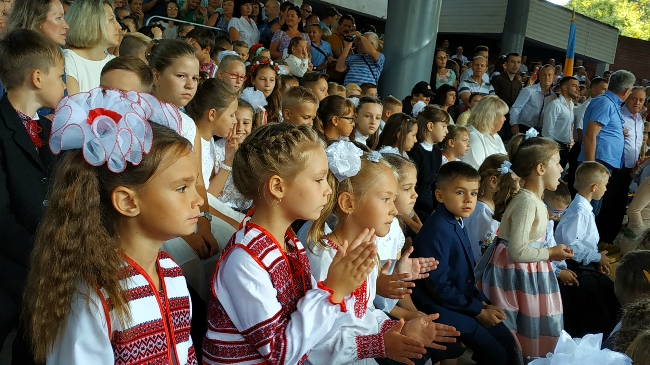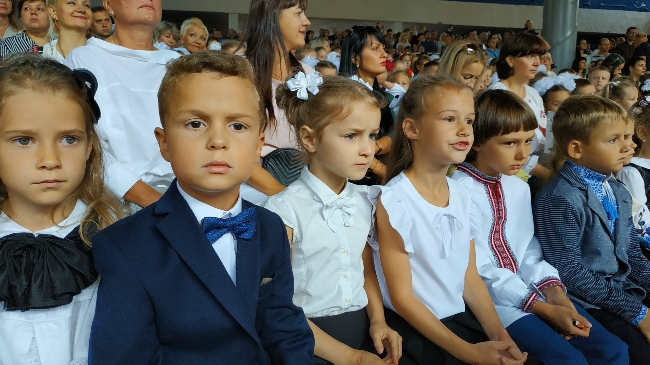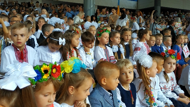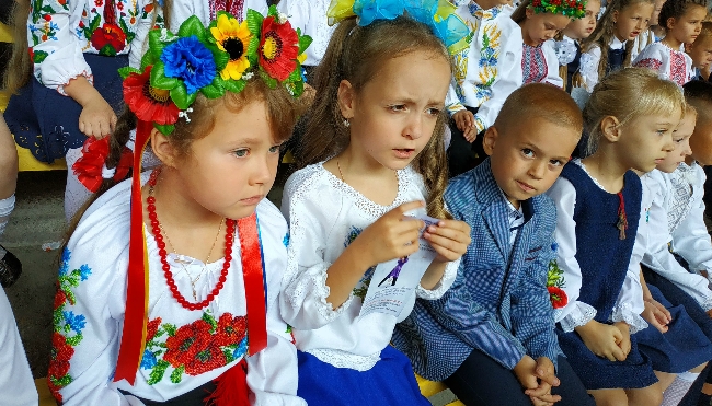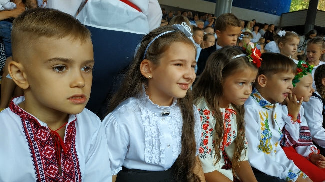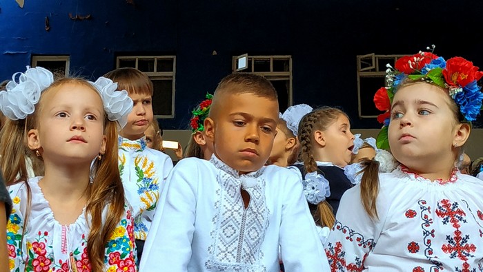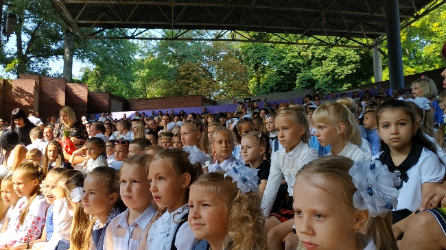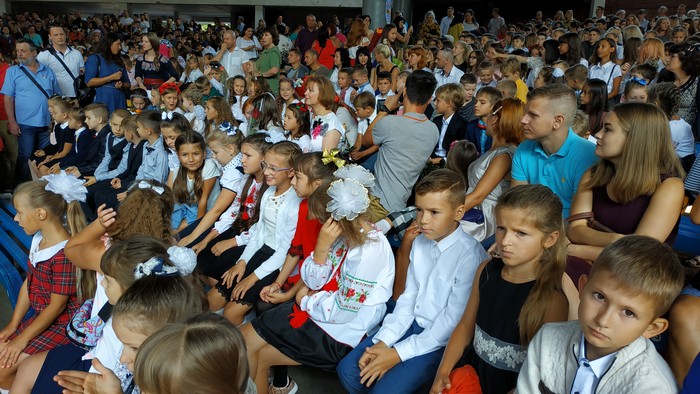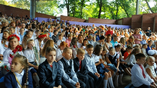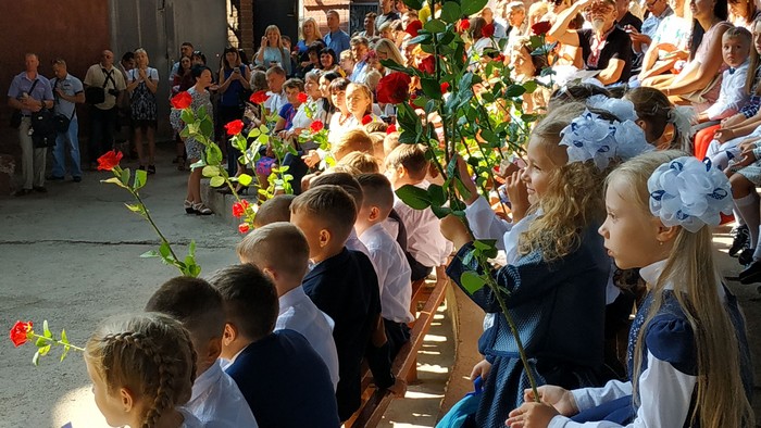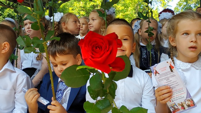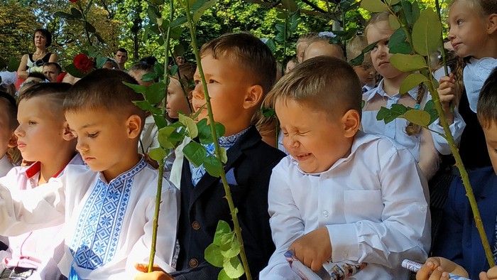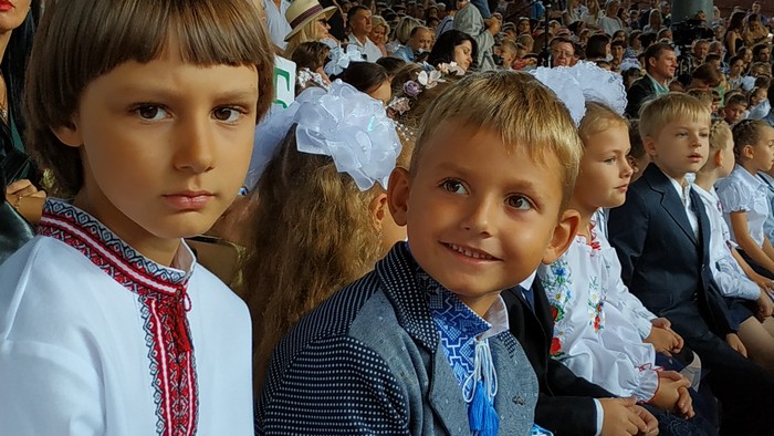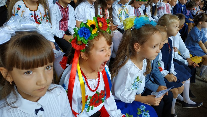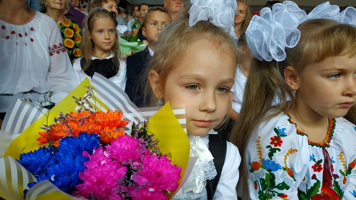 Какие же они всё-таки смешные, наши первоклашки! Задумчивые и сосредоточенные, грустные и веселые, сморщенные от солнца, сонные и улыбающиеся. Но все, как один - нарядные, с яркими цветочными букетами в руках, и такие трогательные! Девочки в белых блузочках или украинских вышиванках и юбочках, с белыми пышными бантами и веночками в волосах, мальчики - в костюмах и галстуках, некоторые тоже в вышиванках, с аккуратными модными стрижками.