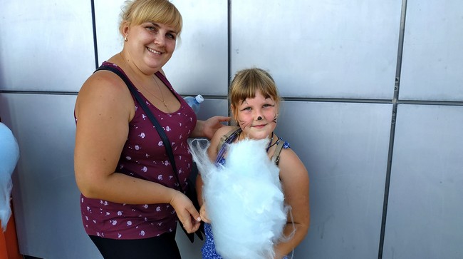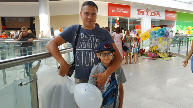 Илья (водитель-дальнобойщик) с 8-летним сыном Егором приехали на праздник из Славутича. Егору всё очень нравится. Обычно, когда приезжают в Чернигов в «Голливуд» - обедают в «Вареничной». Сын ел пельмени с индейкой и сырники, папа – вареники с картошкой и копченой курицей. В планах - купить попкорн и сходить вместе в кинотеатр. Еще Егору хочется сделать сегодня аквагрим.