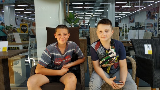 Мальчишки бывают здесь очень часто. Любят проводить время в Детской Планете. Признаются честно: сегодня нравятся бесплатные угощения (соки, кислородная пенка, соки, мороженое) и наличие бесплатного интернета в телефонах.