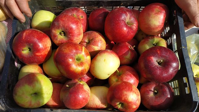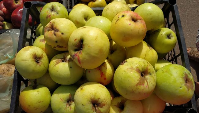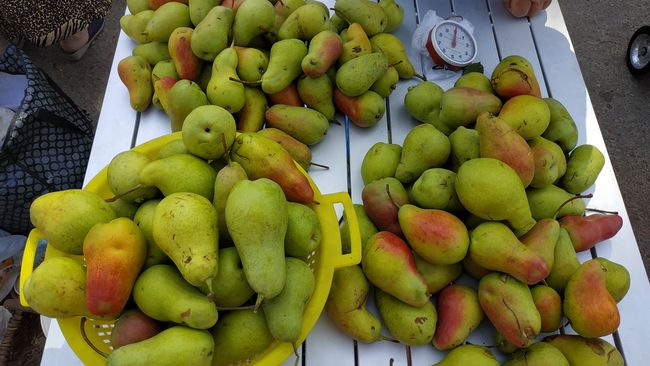 Жители из близлежащих сел привезли на продажу горы яблок, груш, помидоров, сладкого перца, картофеля. Диву даешься, как же богата и плодоносна наша земля, как много вложено человеческого труда!