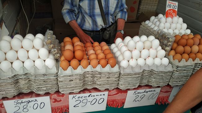 В павильоне эти же яйца из Городни стоят 28 гривен, из Косовщины (Сумская область) – 28-29. Домашние яйца продают по 30 грн. за десяток