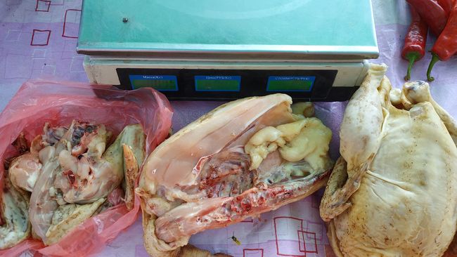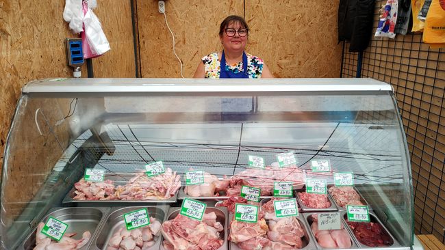 В отдельных магазинчиках от производителей «Наша Ряба», «Свіже курча», «Чебатурочка» в продаже есть курятина и индюшиное мясо. Цены особо не отличаются от других рынков и зависят от производителя. Но за полгода существенно выросли. Так цена на куриное филе от 87.90 выросла до 107.90 грн./кг, то есть на 22,7%, а на крылышки - от 47.90 до 71.90, то есть на целых 50%! На индюшиное филе - от 117.80 грн. до 130.90 грн./ кг – на 11%.