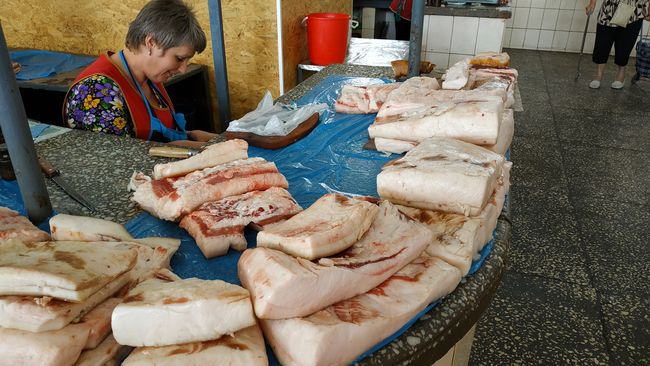 Цены на свиное мясо и сало в мясных павильонах закрепились на определенном уровне и в среднем не отличаются от цен на рынках города.