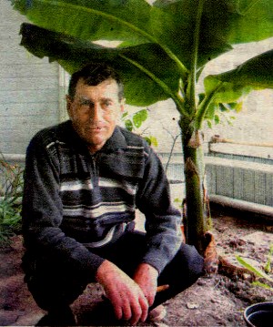 Перші саджанці купував по 80 гривень. Тепер сам розмножую. Як? Під землею відрізаю від такої собі цибулини паросток-корінець. Це дуже акуратна робота. І відсаджую у вазон. Із семи чотири саджанці виживають. Спочатку у мене бананові «пальми» росли примхпиво. Так я вирішив проконсультуватися з чоловіком моєї хрещениці. Він камбоджієць. Коли Какадо побачив мій сад, то довго сміявся. Казав: ніколи не думав, що його в Мені доморощеними бананами пригощатимуть. І розповів кілька секретів. Тепер я рощу ці пальми у великих вазонищах. Там по п'ять відер землі. Дренаж. Дірочки. Удобрюю тільки коров'яком. Влітку добре напуваю. На весь зимовий сад розходую через день по 50 літрів води. Взимку — менше.