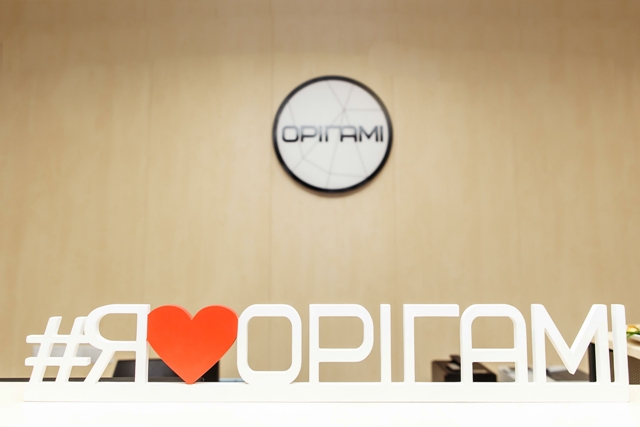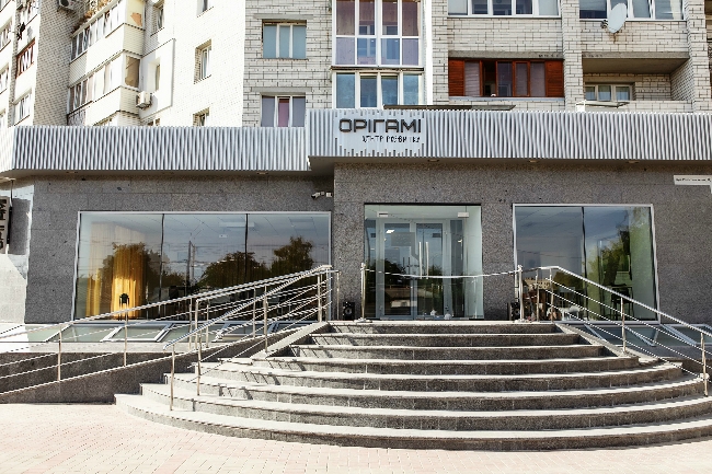 Новий “Орігамі” має 2 поверхи, на яких розташовані 2 великі студії, 3 класи, а також простора рецепція з кафетерієм, зоною очікування та роздягальнею. Особливістю тут є те, що батьки, зручно розташувавшись на одній із локацій для очікування з кавою або чаєм, можуть спостерігати за тим, як їхня дитина перебуває на заняттях, адже стрім із камер спостереження постійно виводиться на екран загальнодоступного телевізора.