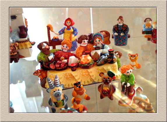 И действительно. На полочках чего только нет: и драконники, и рыбки, и козлики, и голубки. Красиво, и не скажешь, что детские ручонки лепили, хоть на выставку.