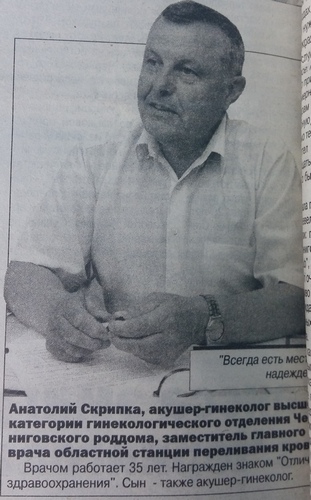 Анатолий Скрипка, акушер-гинеколог высшей категории гинекологического отделения Черниговского роддома, заместителе главного врача областной станции переливания крови.