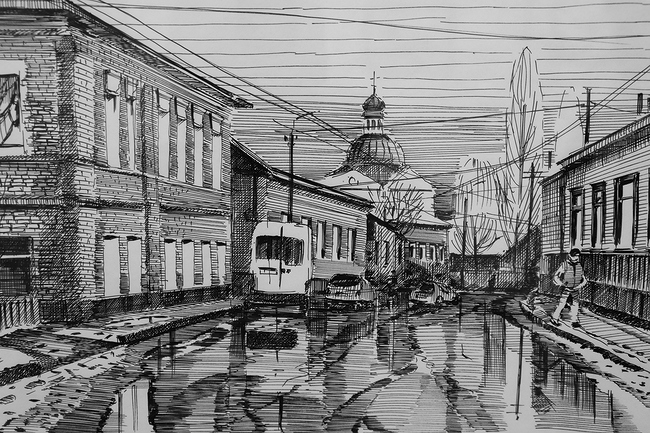 А глядя на графические работы архитектора Константина Нагорного, понимаешь, как быстро летит время. Совсем недавно в городе стояли небольшие, украшенные резьбой деревянные домики, которые присущи послевоенной черниговской архитектуре. Сегодня они бесследно исчезают.