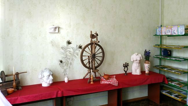 Тут вже створений невеличкий музей з українськими історичними атрибутами, одягом.