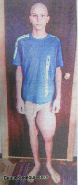 Второй год Саша Кривошеенко, которому сейчас 13 лет, борется со страшной болезнью — его левое бедро поразила саркома Юинга. Постоянные анализы, обследования, девять (!) курсов химиотерапии... Физические и моральные силы мальчика и его родных на пределе, давно исчерпаны материальные ресурсы, и сегодня они вынуждены просить ! помощи у тех, кто небезразличен к чужому горю.