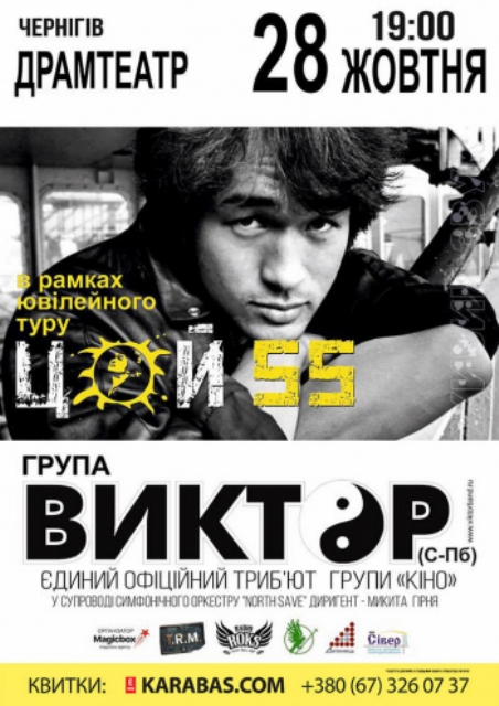 28 жовтня Чернігівський обласний академічний український музично-драматичний театр ім.Т.Г Шевченка відбудеться концерт, присвячений знаменній даті — 55-річчю чудового музиканта, поета, засновника групи «Кіно», художника, актора та кумира кількох поколінь Віктора Цоя!