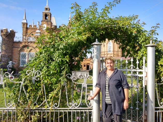 У Дмитрівці мене зустрічають пан Анатолій і Світлана Солдатова - молодша донька нині вже покійного глави сімейства Юрія Солдатова, яке й збудувало в селі казковий замок. Про них кажуть: "Вони ж німці", хоча насправді це лише частково так. Німкенею з Поволжя у родині була мати Марія Іоганівна, а батько Юрій Григорович - росіянин із Москви. У Дмитрівку сім’я з двома дітьми переїхала зі Сибіру в 1966 році. Батьки працювали на радіостанції в нафторозвідці і були переведені в Бахмацький район на роботу. Третя донька - Світлана - народилася вже тут, і саме вона з двома синами господарює зараз у родинному обійсті.