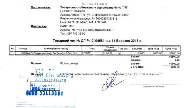 Також, Валентин постійно тримає в курсі всіх, хто допомагає, розповідаючи як проходить лікування і куди витрачаються кошти. Та продемонстрував один з рахунків для операції.