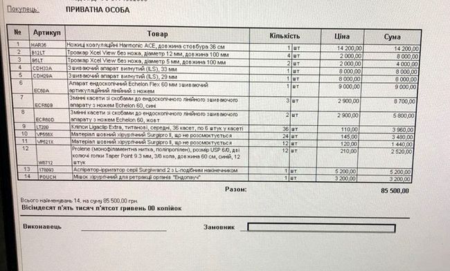 Це один з трьох пакетів, для хірургів. Є ще для анестезіолога на 6000 грн і для медсестер. До речі операція буде тривати 8 годин.
