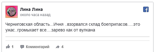 «Черниговская область...Ичня ..взорвался склад боеприпасов.....это ужас..громыхает все....зарево как от вулкана»