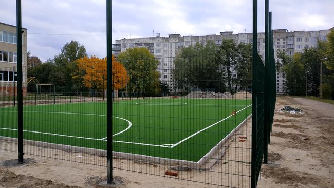 На території загальноосвітньої середньої школи №12 закінчується будівництво футбольного поля зі штучним трав'яним покриттям.
