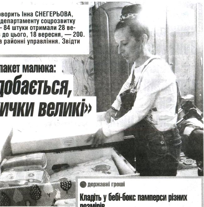 — Хочу порадити комплектувальникам у Києві: кладіть у бебі-бокс памперси різних розмірів. Усі 4 упаковки — «одинички». Моїй донечці вони, наприклад, усі були маленькі. Діти народжуються різні за вагою, ростом — це перше. Друге — ростуть. Сьогодні треба «одиничка», через три тижні — «двієчка».