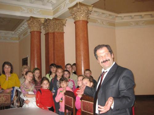 Владимир Суховерский: - Хочу подякувати нашим гостям за те, що вони погодилися приїхати, що вони сьогодні з нами. Вони дарували своє мистецтво не просто дітям, а дітям, які стали преможцями обласних оглядів, це були вибрані діти. Їх ніхто не примушував сюди їхати. Це було їх бажання побувати в Іржавці, відвідати Качанівку, походити там, де писалися музичні твори. До речі, в цьому залі відбувалася апробація багатьох сцен «Руслана і Людмили». Тут творили Маркович разом з Глінкою. Я надзвичайно щасливий бути на цьому концерті і надзвичайно тішусь тим, що ви нам не відмовили. Дякуємо!
