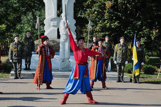 Торжества начались с выступления артистов Черниговского филармонического центра фестивалей и концертных программ, которые казацким танцем подняли патриотическое настроение призывников.