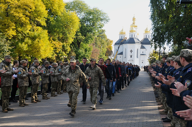 11 октября, в Чернигове возле Екатерининской церкви, вблизи Памятного знака Борцам за свободу и независимость Украины, состоялись торжественные проводы призывников.