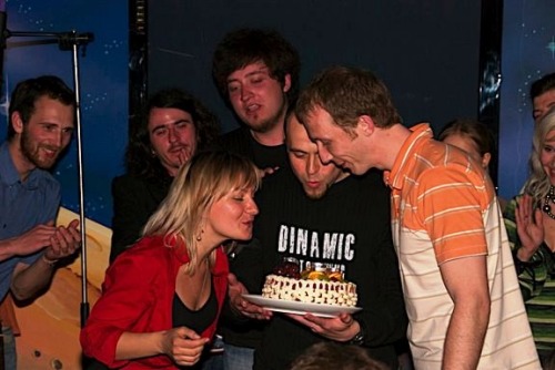 Не обошёлся праздник и без импровизированных спецэффектов. Одна из посетительниц так увлеклась фотосъемкой происходящего, что слишком близко подошла к огню свечей, который были расставлены по всему залу. Одежда на её спине… вспыхнула - и тушить её пришлось именинникам - Александр Свириденко не растерялся и крепко прижал девушку к себе, чем и загасил пламя!