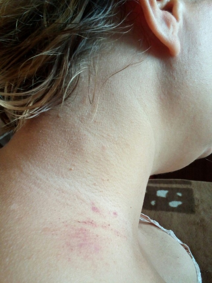 Безработный, ранее не судимый Максим летние «гастроли» проводил в Чернигове: 2 месяца с 15 июня по 22 августа наводил страх на женщин областного центра, срывал с них золотые украшения среди бела дня, в том числе и в центральных районах города. Большинство тех, кто пришли на предварительное заседание сразу узнали парня, когда конвой проводил его в зал суда через коридор. Одна из потерпевших Наталия Борисович (была ограблена 9 августа на ул.Еськова) даже расплакалась после заседания, когда вновь увидела своего обидчика уже через решетку. Наталия предоставила нашему корреспонденту фото, на которых видны телесные повреждения на коже, после того, как Максим сорвал с нее подарок мужа – цепочку весом 11 грамм. С тех пор у нее появились признаки нервного расстройства: когда идет по улице всегда оглядывается, роскошные серьги – тоже подарок мужа сменила на скромные «гвоздики», какую-либо цепочку вообще боится надевать.