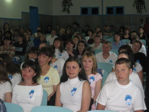 Традиційної урочистої лінійки також не було – учні та вчителі зібрались в актовій залі. На жінках - не шкільні форми, а звичайні білі футболки. Щоправда, й це вбрання тут є святковим, бо зазвичай у виправних колоніях засуджені носять спецодяг встановленої форми. Наприклад, влітку всі ув’язнені жінки мають бути вдягнені у сукню з нагрудним знаком та в білу хустку.