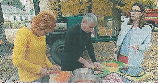 Костянтин Грубич 20 жовтня приїхав у селище Дружба та з польовою кухнею, яку йому надали рятувальники з Держслужби з надзвичайних ситуацій, розташувався біля КПП військової бази і почав готувати печеню по-чернігівськи. Для цього на базарі закупили сітку (до 20 кг) картоплі за ціною 4 грн/кг, на засмажку - сала і 3 кг м’яса. Потрібних за рецептом грибів не було, але знайшли їх у селі Августівка у місцевої жительки пані Валентини Лавринець.