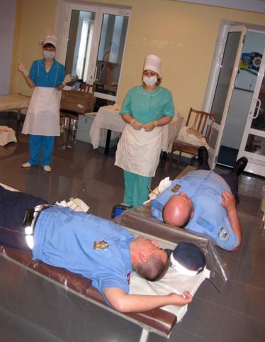 - За первый час сдачи через нас «прошло» уже 15 человек. Планируется сдача крови 60-70 сотрудниками милиции. В дальнейшем эта кровь пойдет на переработку. Она будет расщепляться, и мы получим клеточный концентрат и плазму. Сегодня мы берем минимальную дозу для «первичного» донора – 300 мл. В обязательном порядке все сдают 40 мл крови на анализы. Мы уделяем этому особое внимание. То, что у некоторых доноров регулярно выявляются такие заболевания, как гепатиты, сифилис, ВИЧ, ни для кого не секрет. Кровь приходится утилизировать в случае обнаружения в ней инфекции. Сегодня, к сожалению, люди сдают кровь только тогда, когда у кого-то что-то произошло и кому-то что-то нужно. Тогда или родственники сдают, или же мы вызываем кадровых доноров, чтобы они откликнулись. Часто и наш персонал идет и сдает, потому что кровь нужна, а надежды на то, что количество доноров увеличится, мало. Последний выезд «на предприятие» у нас был в мае – мы ездили в районную больницу, где ее персонал проводил сдачу крови. Кстати, на медиков мы больше всего и рассчитываем. Это люди, которые знают, что такое на деле отсутствие донорской крови в сложной ситуации!