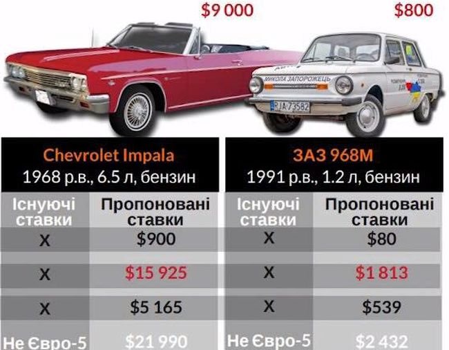 Примеры действующих и предлагаемых ставок при покупке авто разного возраста. Понятно, что Запорожец никто ввозить не станет – это просто для примера.