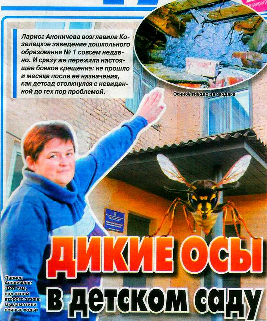 - Был единственный случай, когда оса укусила мальчика из группы на первом этаже Причем там ос не было, залетела какая-то одна. Мы благодарны и его родителям, и родителям всех воспитанников за понимание и терпение — подчеркивает Лариса Петровна. — Конечно, они беспокоились за своих малышей. Но и мы не сидели сложа руки, били во все колокола. Как оказалось, не так просто найти необходимых специалистов. Теперь мы научены горьким опытом. Поэтому и делимся им - вдруг кому-то это пригодится.