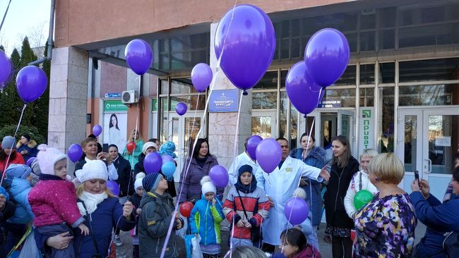 А по окончании праздника, каждому ребенку подарили по воздушному шарику, которые дети все вместе выпустили в небо. Фиолетовый цвет шара символизирует надежду, чуткость, сочувствие и открытость в помощи другим.