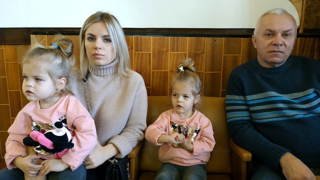 Анна с дочерьми Сашей и Дашей (сейчас им по 3,2 годика, родились девочки с весом 1200 г и 1800 г) и дедушкой Виктором. Сразу после выписки мама очень тщательно относилась к питанию малышек, также, хорошему развитию способствовало плаванье, массаж и др.