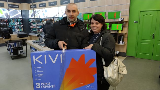 Пара Валентина и Сергей приобрели Smart TV 32 марки «KIVI» со скидкой 15%. Старая цена 5299, новая – 4444 гривен.