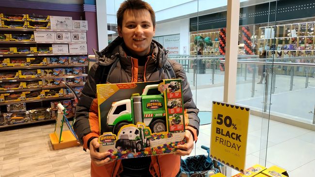 Надо сказать, что по сравнению с прошлым годом, в этом году нам показалось, что в торговом комплексе менее многолюдно. При входе традиционно покупателям раздают флаеры, в которых указаны скидки, на главном экране светится заставка «BLACK FRIDAY» и «Самая большая распродажа года», звучит музыка, вокруг шумно и весело.