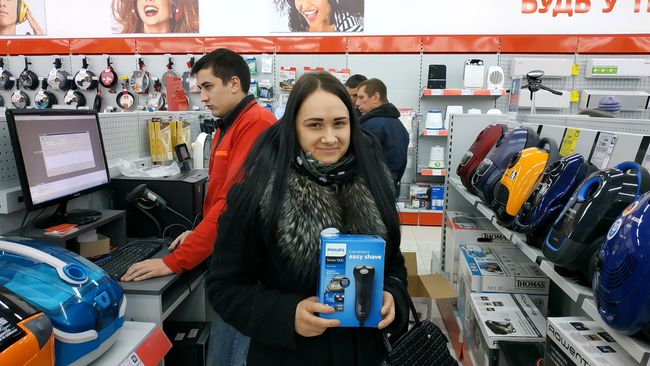 В одном из магазинов по продаже бытовой техники овсюду расклеены и расставлены черные флайеры BLACK FRIDAY. Самая высокая скидка 31% была обнаружена на пылесосы «PHILIPS». Старая цена 2899 гривен, сегодняшняя – 1999. Их то сегодня и покупали с большим удовольствием.