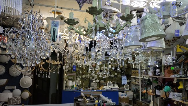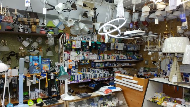 - Этот магазин мы открыли около 15 лет назад. Были вложены наши собственные средства, но выиграть тендер у фонда коммунального имущества не удалось. Вернее, часть отсудили, а часть в сумме 100 тысяч долларов потеряли. Но все равно, живем мы дружно - мирно, всю жизнь потихоньку работаем, люди наш магазин любят, так как мы ставим умеренные цены. В продаже, как видите, люстры, светильники, бра, разные электротовары, картины.
