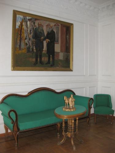 Обычно экскурсия начинается на первом этаже, с так называемого Летнего зала, откуда открывается прекрасный вид на Майорское озеро и где сегодня выставляют свои работы местные художники. Сотрудники заповедника потрудились над созданием мемориальных комнат, как то: комната художника Ге с бюстом художника, мебелью зелёного цвета и мраморным камином, комната Шевченко с репродукцией его картины «Катерина» (оригинал кисти Тараса Григорьевича был в коллекции меценатов), комната Гоголя, комната Глинки.