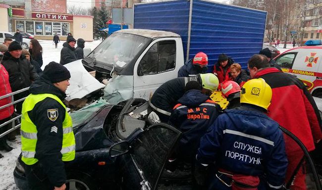 Але розповіли, що в той день, менш ніж за годину на вулиці Кільцевій лоб у лоб зіткнулися вантажівка «ГАЗ» та легковик «Skoda». В результаті ДТП постраждали водій та пасажир «Skoda». Їх також довелося діставати з понівеченого авто за допомогою спеціальних засобів.