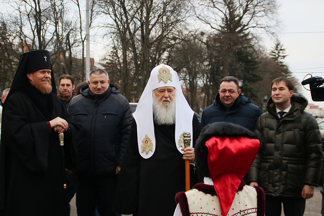 Це вже десятий візит до Чернігова Святішого Патріарха. Зустрічали його голова облдержадміністрації Олександр Мисник, голова обласної ради Ігор Вдовенко, духовенство, віряни та громадськість. Хресною ходою вони пройшли до храму Святої Катерини де Патріарха зустріли хлібом та сіллю і подяками за працю над створенням в Україні Єдиної помісної церкви.