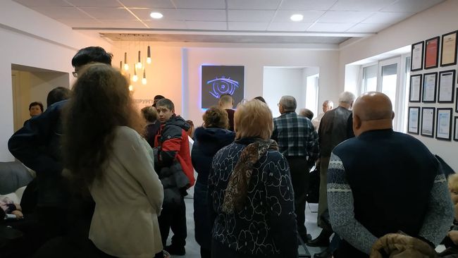 Сегодня Олег и Алёна, следуя рекомендации врачей, привели Наташу в офтальмологическую клинику для осмотра киевским офтальмохирургом. В вестибюле к 10 утра собралось много людей, но, в ожидании приезда Филипчука нам и удалось с ними побеседовать. Как только доктор приехал, Наташу пригласили вне очереди на осмотр.
