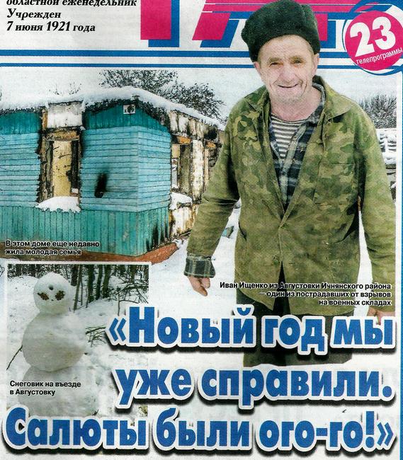 Ехать по деревне жутко - от некоторых домов остались лишь пепелища. Тут и там из земли торчат дымоходы - как на послевоенных фотографиях. Заходим в один из таких дворов. На уцелевшем деревянном заборе детской рукой краской нарисовано солнышко, стоят качели. А самого дома нет -лишь обгоревшие стены. Соседи рассказывают, что здесь жила молодая семья, только год назад сделали хороший ремонт и перекрыли крышу. Во время взрывов мать выбежала из дому в чем была, прижимая к себе ребенка. Сейчас эта семья живет в Ичне -им дали новый дом. Всего в Августовке пять полностью уничтоженных домов - всем владельцам выделили новые в райцентре.