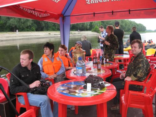 В ходе коротенького инструктажа нам объяснили самое важное: где лежат спасательные жилеты и что на плоту запрещено разжигать костры. Мы расписались в «бортовом журнале» и отправились в путь. Впечатления, скажу я вам, просто супер! Сидим на пластиковых стульчиках, спокойно общаемся, обсуждаем возможности и перспективы такого вот вида туризма, плот неторопливо идет вниз по течению, пейзажи по обеим сторонам реки меняются как в калейдоскопе - один красивее другого! Дождик нам не страшен, потому что есть навес. На столике у нас стоит настоящий тульский самовар. Стоит не для интерьера, его вполне можно использовать по назначению! Если не хотите чаю – есть пиво, да за ваши деньги есть все, чего только душа пожелает, рассказывает инициатор и руководитель проекта «Сплавы на плотах по реке Десна» Сергей Провозин.