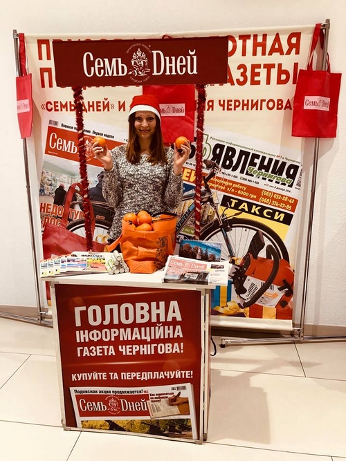 В период с 28 по 30 декабря в торговом центре «Голливуд» будет работать выездной пункт подписки на черниговские газеты. График работы с 10.00 до 21.00. Не пропустите последний шанс в этом году оформить подписку на любимые черниговские газеты «Семь Дней» и «Объявления Чернигова» на 2019 год по льготной цене от редакции. Всего 220 грн. (экономия 68 грн. от обычной стоимость подписки). Причем каждый подписчик ГАРАНТИРОВАНО получает подарок от редакции, а также участвует в розыгрыше главных призов – ВЕЛОСИПЕДА и БЕНЗОПИЛЫ!