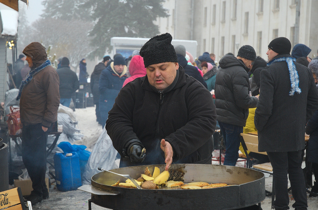 Многолюдно и в фуд зоне. Здесь все дымит, жарится, парится, наливается и вкусно пахнет. Встречаются друзья и знакомые, чтобы снова поздравить друг друга с Новым годом, и высказать свои пожелания.