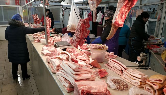 Что ж, как и на Центральном рынке, цены на мясо держатся на уровне цен конца прошлого года, разве что на свиной ошеек и филе выше на 10-20 гривен. Эти части свиной туши можно купить от 130 до 150 гривен за кг, подчеревок и бочок - за 95, а свежее сало – за 30 гривен. На сельском рынке в продаже домашние курочки, утки, кролики и, даже индейка.