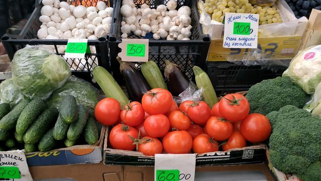 На прилавках под куполом рядом с овощами и фруктами в такую пору большой выбор всевозможной консервации, салатов и домашних заготовок, а также натурального пчелиного меда.