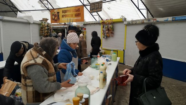 Домашние молочные продукты привозят и продают как в павильоне, так и на территории сельского рынка. Килограмм свежего творога сегодня стоит 60 гривен, но перед праздником отдают за 50. Цены – те же, что и на Центральном в конце года: