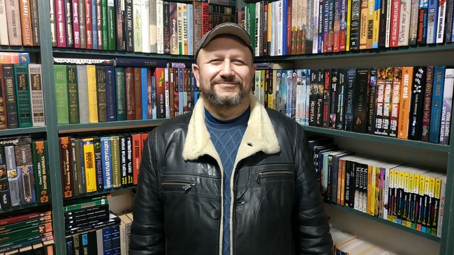 Поэтому, мы заглянули в открытый магазинчик с книгами, который открылся в середине ноября. Помните, раньше здесь был такой же, но побольше? Андрей Васильевич Коваленко признается, что книгами занимается уже больше 30 лет, а такое букинистическое направление, вообще, единственное в области. В его арсенале есть литература на любые темы и разных годов выпуска. Просто здесь находятся далеко не все книги.